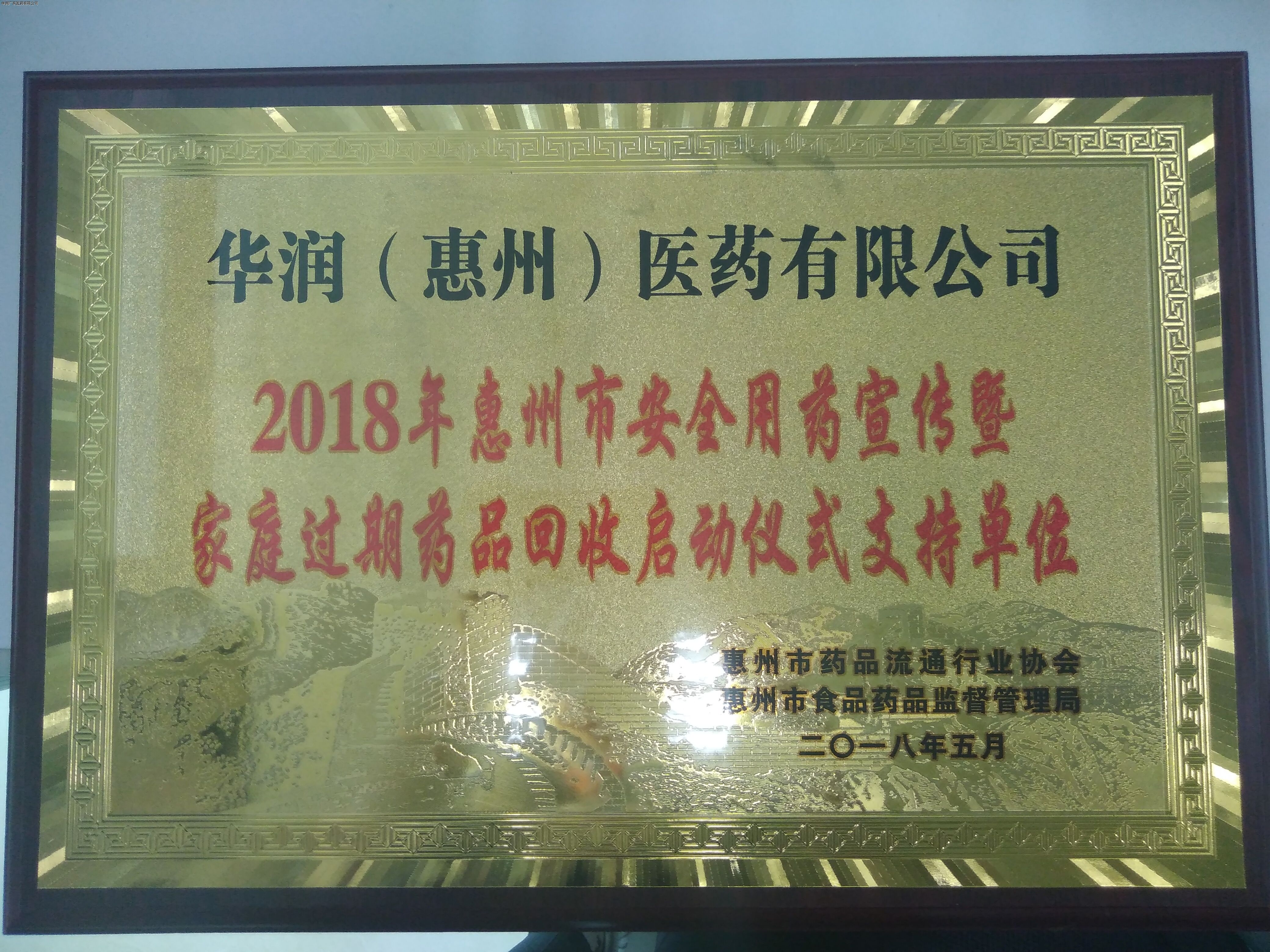 2018年5月20日,惠州市食藥監(jiān)在惠州市濱江公園舉辦了惠州市安全用藥宣傳暨家庭過期藥品回收啟動(dòng)儀式活動(dòng)。華潤惠州醫(yī)藥積極響應(yīng)此次活動(dòng),被惠州市食品藥品監(jiān)督管理局、惠州市藥品流通行業(yè)協(xié)會(huì)確定為惠州市家庭過期藥品定點(diǎn)回收企業(yè),同時(shí)被授予“2018年惠州市安全用藥宣傳暨家庭過期藥品回收啟動(dòng)儀式支持單位”。項(xiàng)目啟動(dòng)后,我司將結(jié)合GSP管理規(guī)范和集團(tuán)EHS管理要求,持續(xù)開展并做好過期藥品定點(diǎn)回收工作,積極履行我司作為央企及社會(huì)公民企業(yè)的社會(huì)責(zé)任,為保障群眾用藥安全、保護(hù)惠州市的青山綠水而不懈努力。