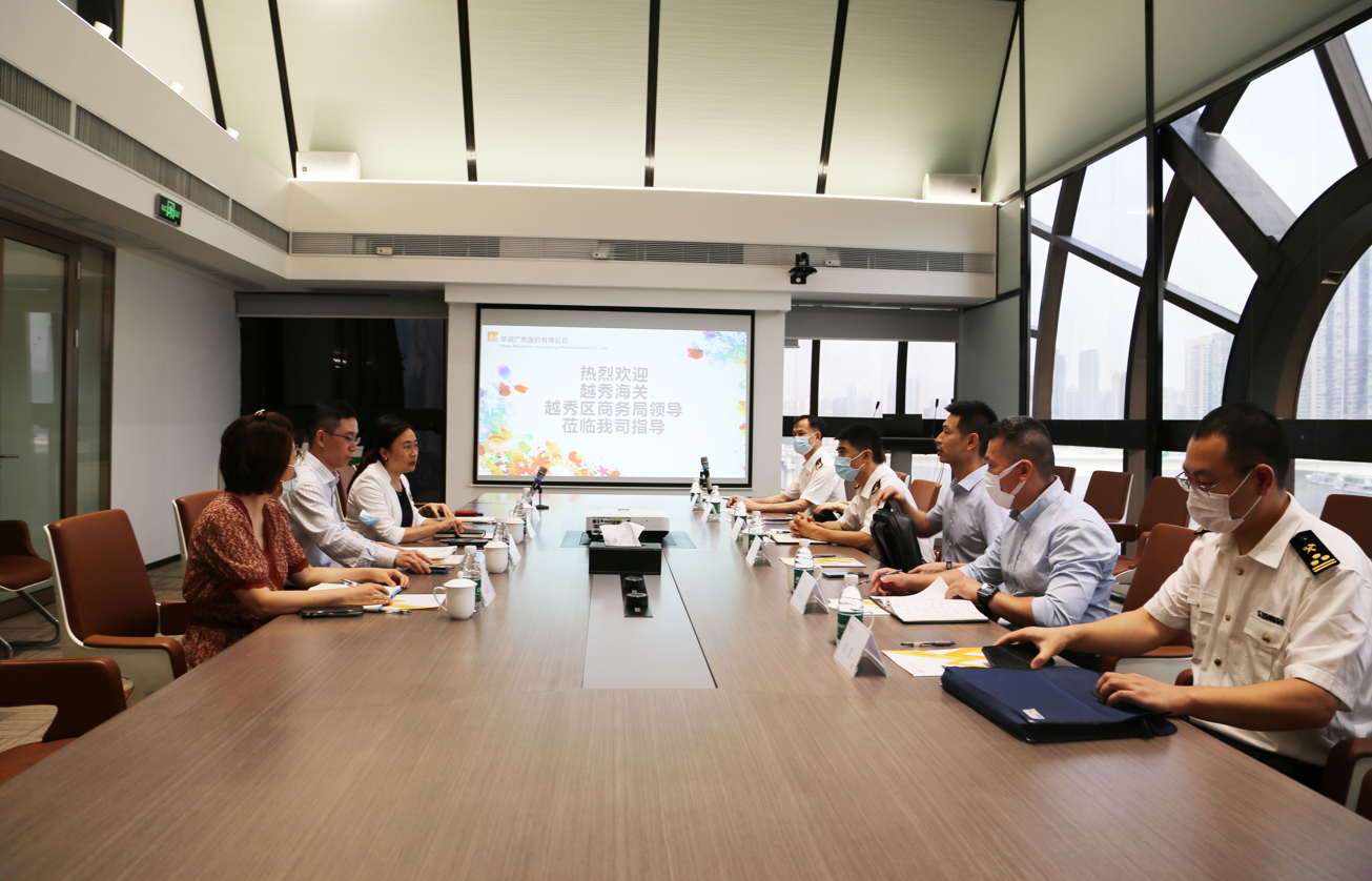 2022年5月26日,越秀海關關長梁惠其、副關長王磊、越秀區(qū)商務局余偉副局長、四級調研員彭文超一行6位領導到訪華潤廣東醫(yī)藥有限公司(以下簡稱:華潤廣東醫(yī)藥),對企業(yè)業(yè)務運營、進口業(yè)務發(fā)展,政府企業(yè)扶持政策等展開調研交流。華潤醫(yī)藥商業(yè)華南區(qū)域、華潤廣東醫(yī)藥總經(jīng)理霍佩瓊,國際業(yè)務部分管領導,進口業(yè)務等相關人員共同參與。
